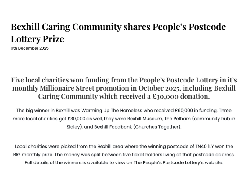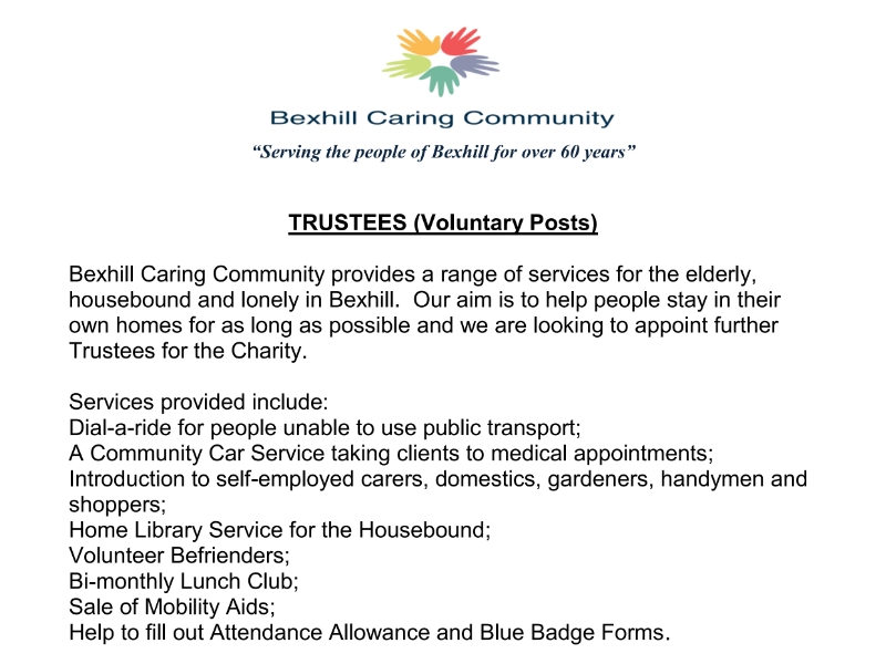 We rely heavily on volunteers and support from the local Community – without them there would be no Bexhill Caring Community.